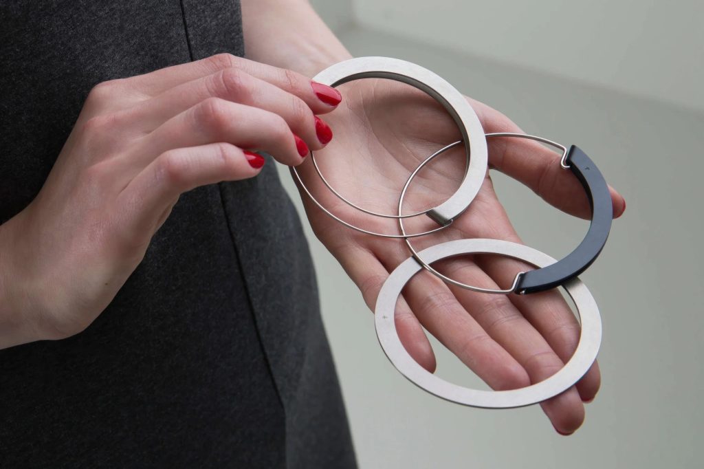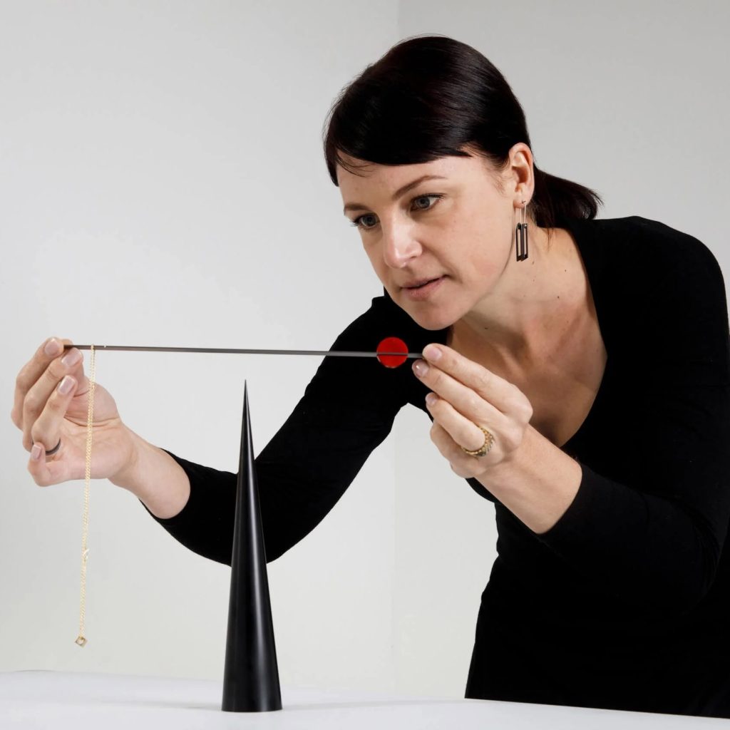 Phoebe Porter’s contemporary jewellery design references the Bauhaus and Russian Constructivism through geometric abstraction and the use of bold colour. The combination of industrial materials with hand-making techniques used in fine jewellery impart a uniqueness upon Porter’s work that is highly sought-after.