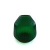A rounded vase with faceted surfaces that create a striking interplay of light and colour. Its undulating ridges are smooth to the touch and are created by cutting into the glass surface.