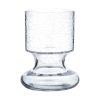 A rounded vase with faceted surfaces that create a striking interplay of light and colour. Its undulating ridges are smooth to the touch and are created by cutting into the glass surface.