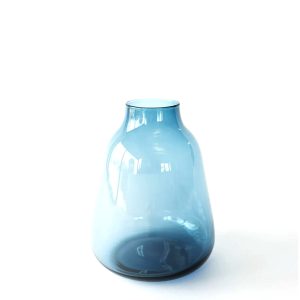 A medium sized vase whose faceted surface creates a striking interplay of light and colour. Its undulating ridges are smooth to the touch and are created by cutting into the glass surface.