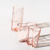 The vase’s floral pattern is debossed into the glass while hot, and is especially charming in this salmon pink hue.