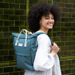 ‘Hackney’ from Kind Bag’s inner and outer fabric is entirely made from recycled plastic bottles. The handles, zips and padding are also entirely recycled.