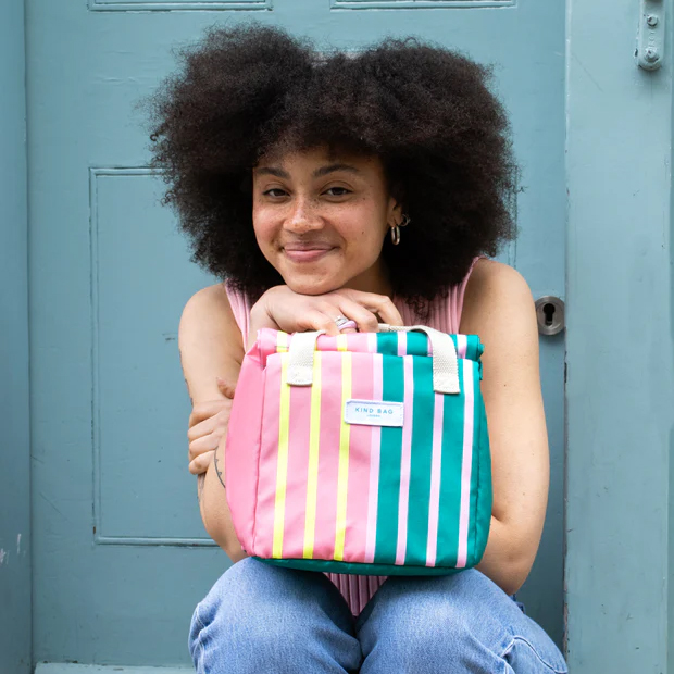 Made from 100% recycled materials, it is water-resistant, machine washable, and features multiple pockets for organisation. The magnetic roll top and snap-together handles ensure your lunch stays secure, whether you’re heading to work, school, or a picnic.