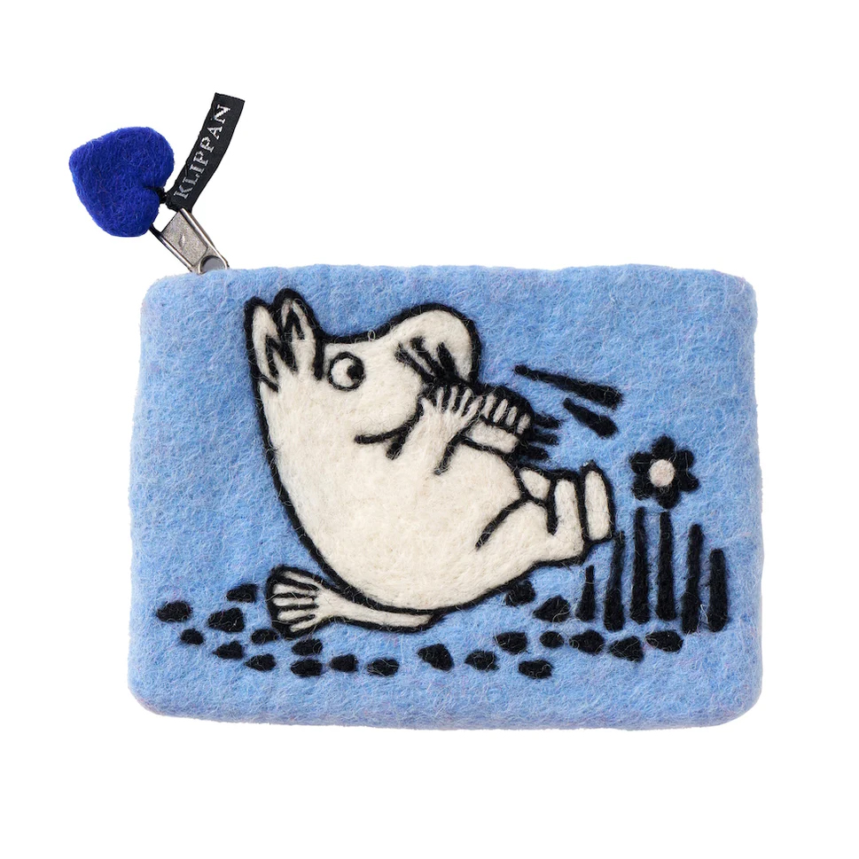 A felt purse from Klippan, featuring a Moomin who has recently fallen over.