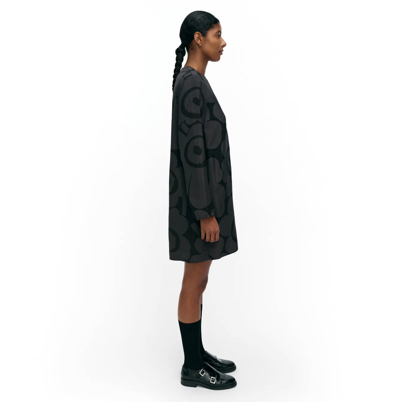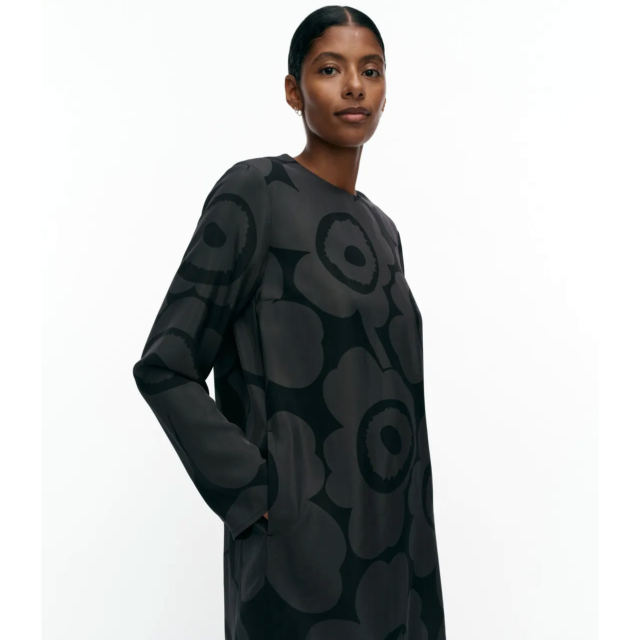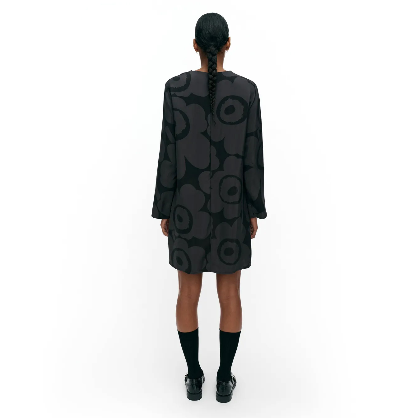 The Hienous dress has a slim, straight fit and features Maija Isola’s Unikko pattern.