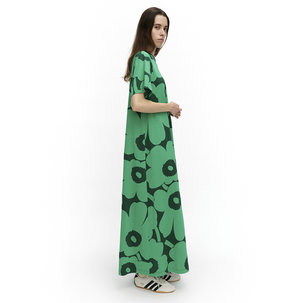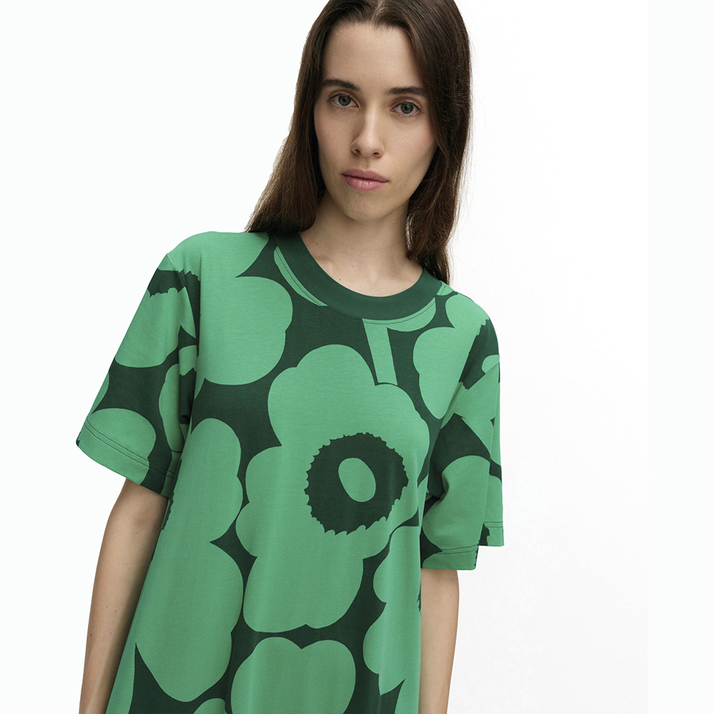 The Koostua jersey dress has a relaxed, A-line fit and features Maija Isola’s 1964 Unikko pattern.
