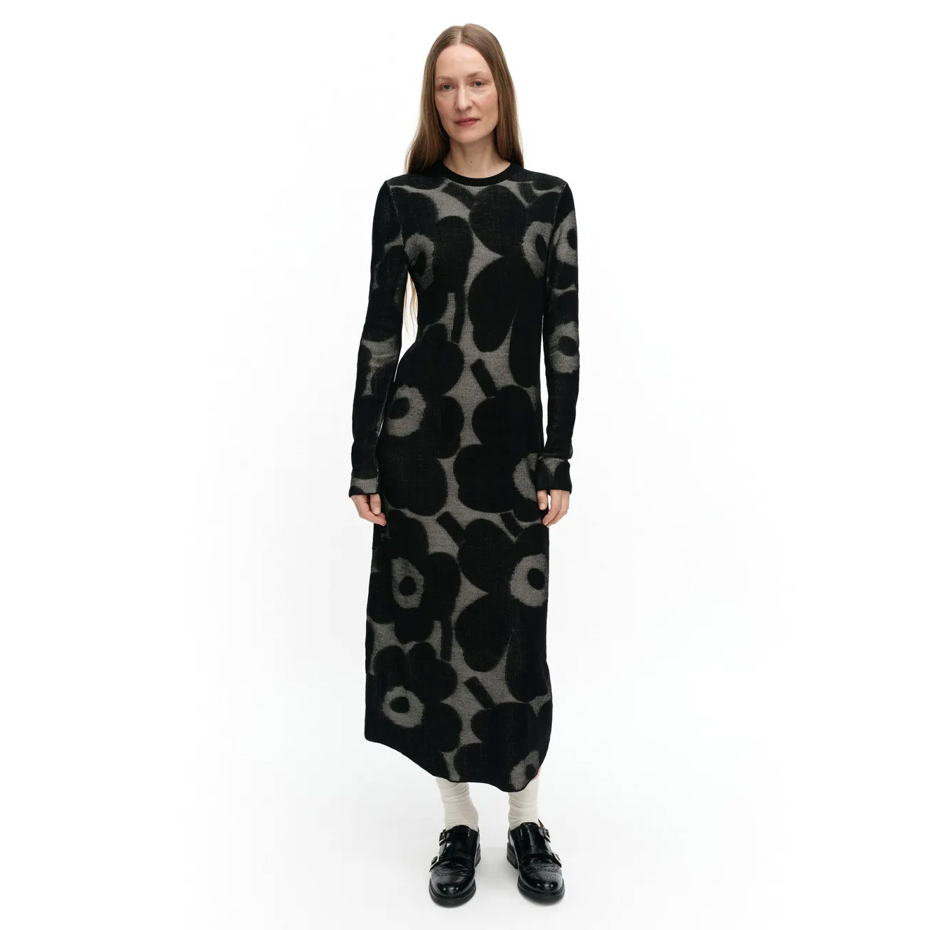 It features the Unikko pattern in a jacquard knit, a round neckline, and long slim sleeves.