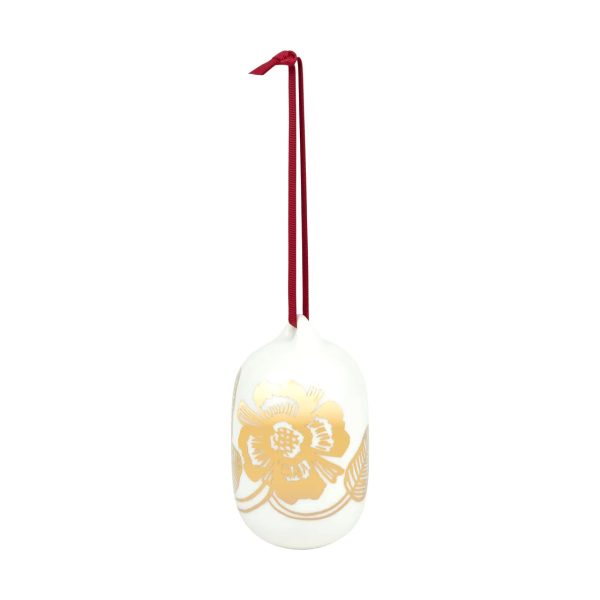 This ornament is adorned with metallic gold pigment and stamped with the year of production.