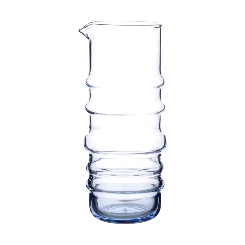 A mouth-blown water pitcher made in coloured glass.