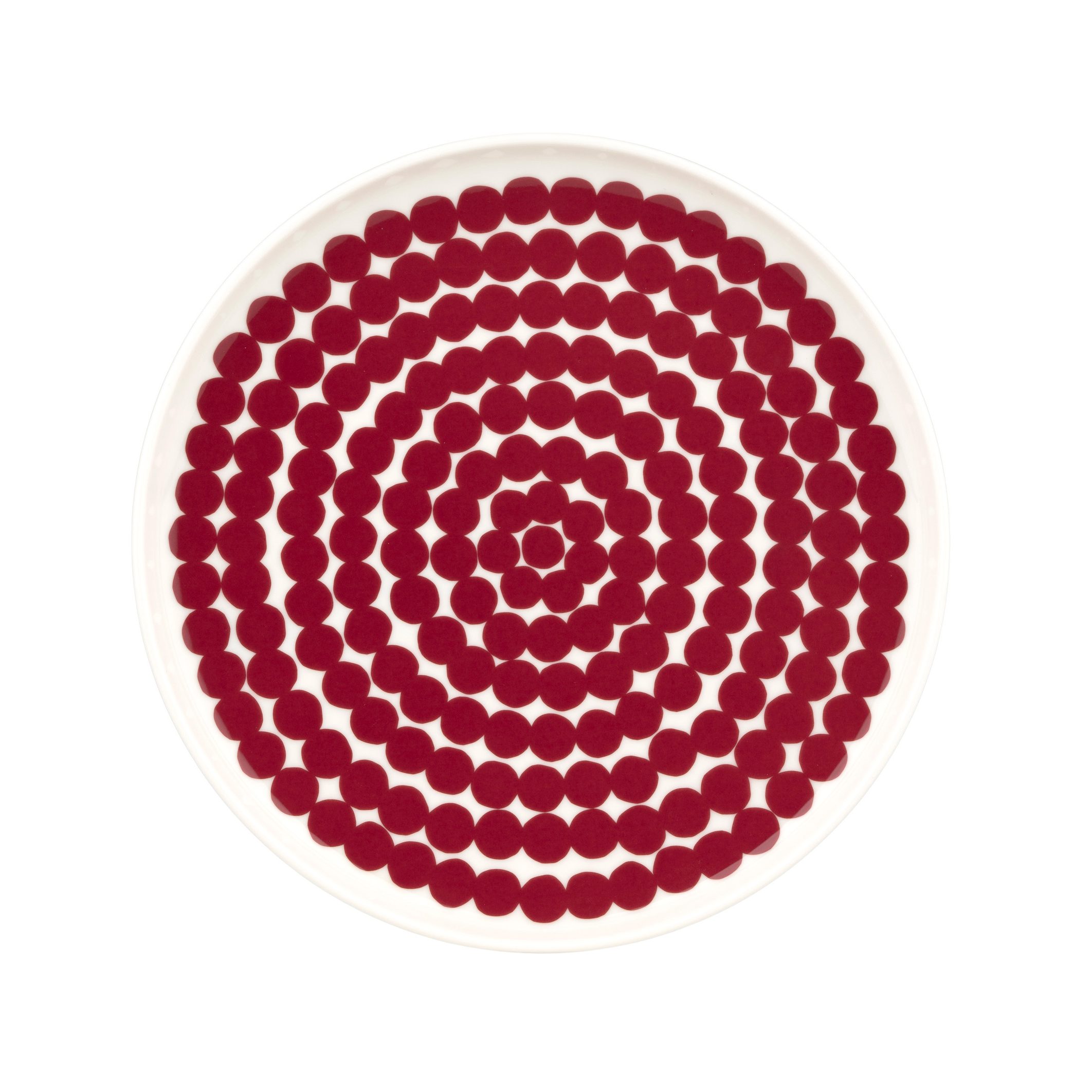A round side plate designed by Sami Ruotsalainen featuring Maija Louekari’s Rasymatto (rag rug) pattern.