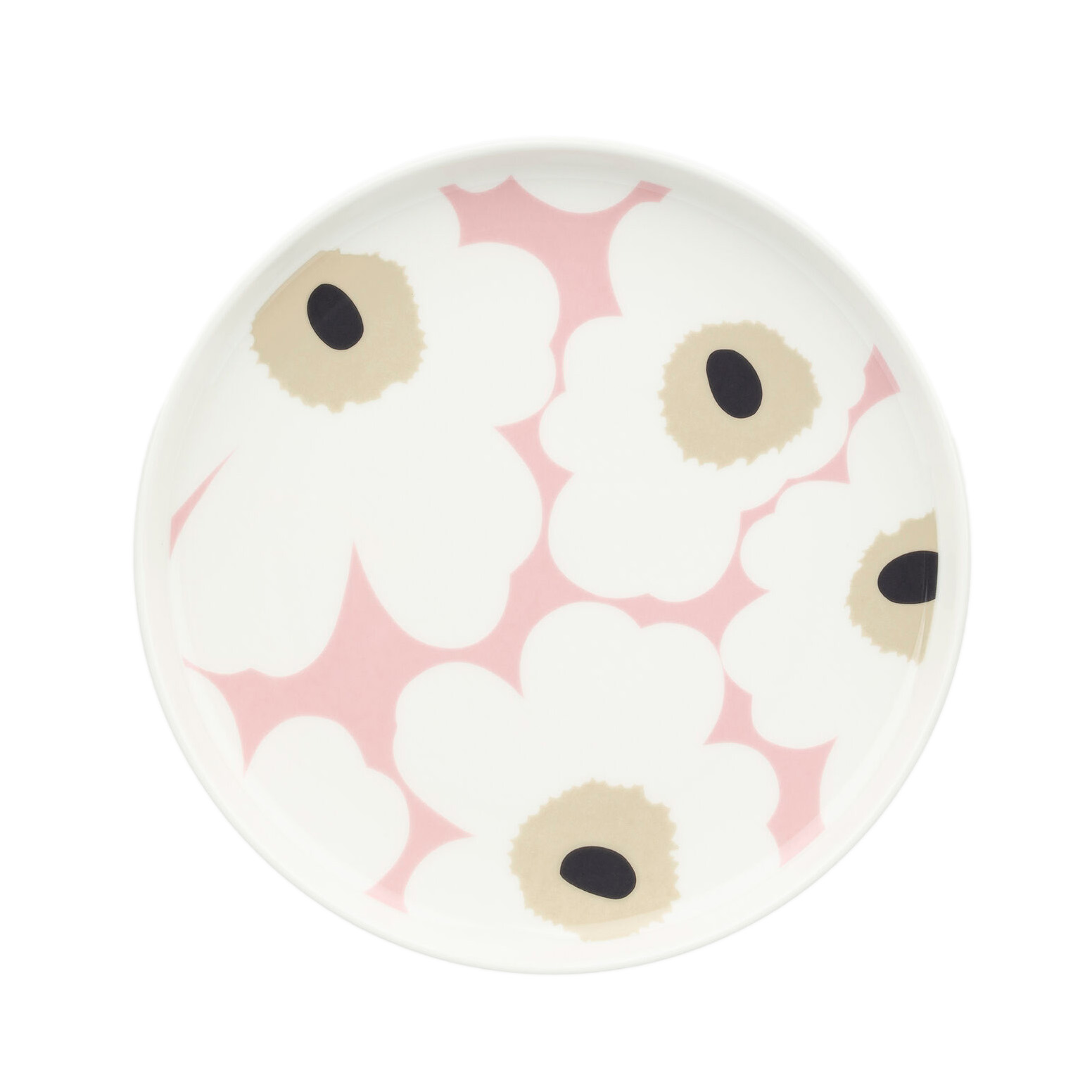 A round side plate designed by Sami Ruotsalainen, featuring Maija Isola’s Unikko motif.