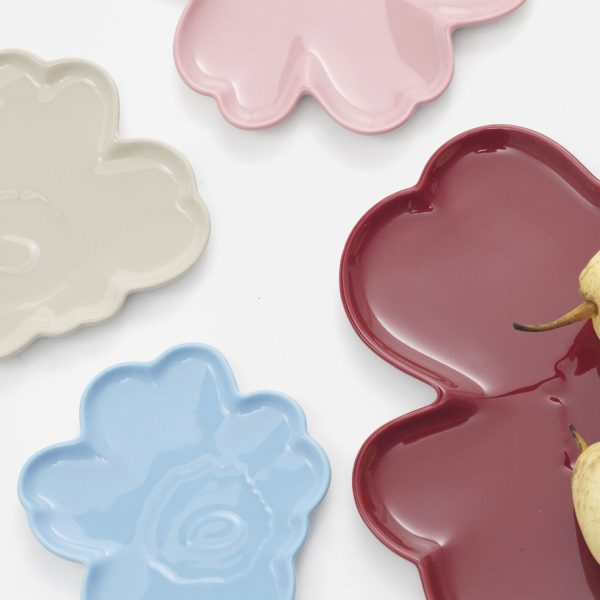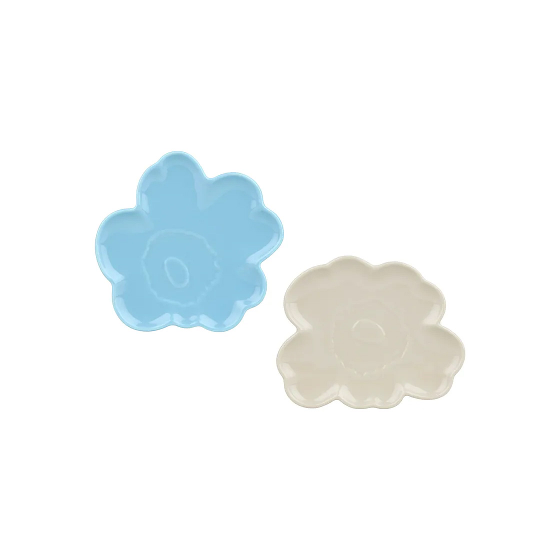 A set of 2 small ceramic plates, shaped like Maija Isola’s Unikko (poppy) flowers.