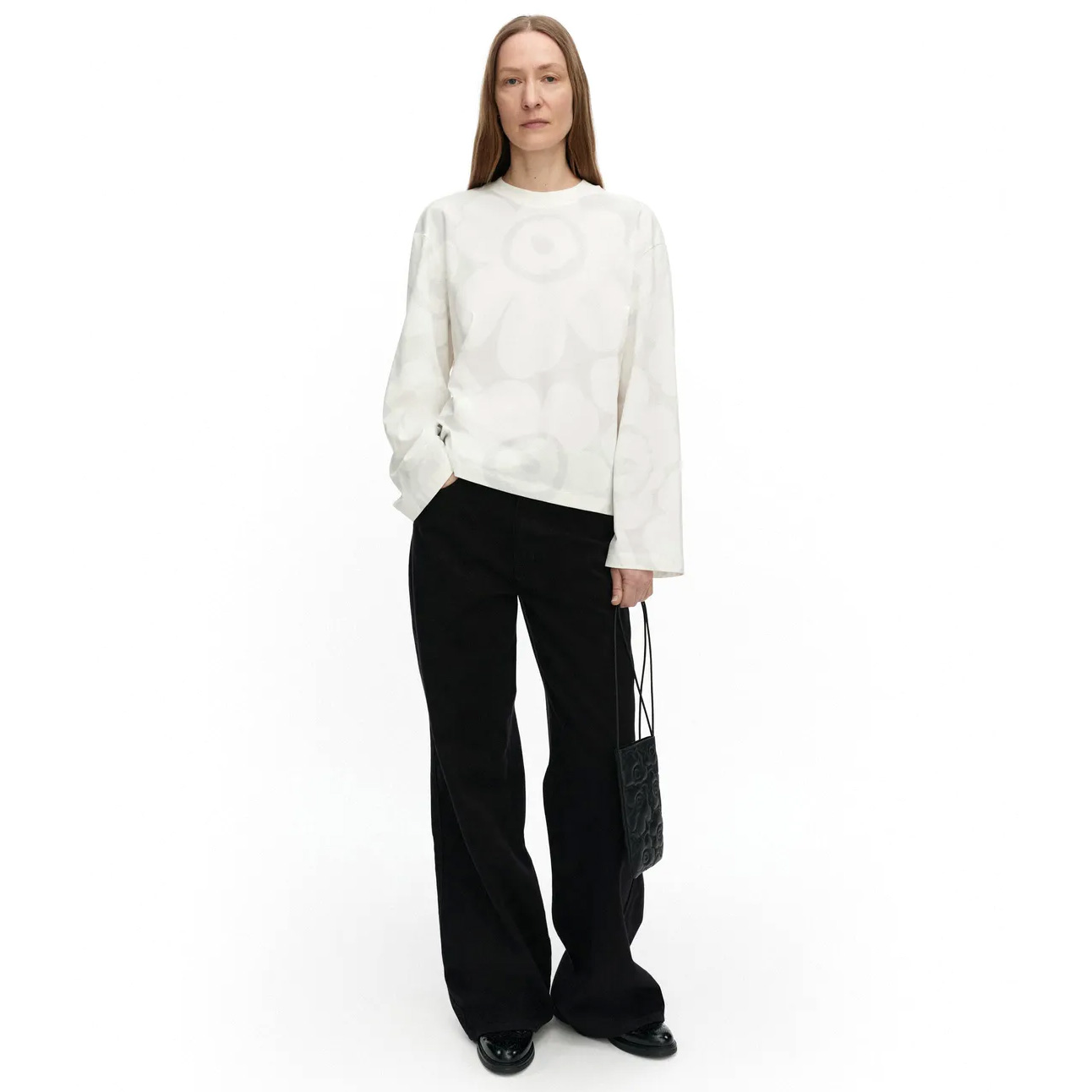 Marimekko’s Valkea cotton jersey top features the Unikko pattern, created by Maija Isola in 1964.