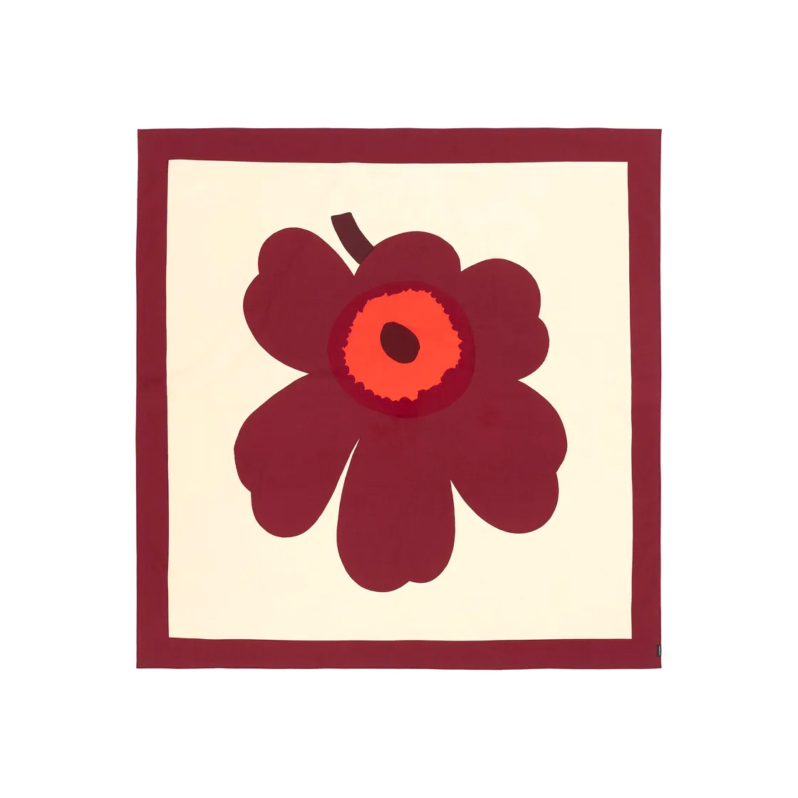 A square tablecloth featuring a single Unikko (poppy) motif.