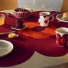 This tablecloth is printed in Helsinki. The tablecloth features a red border and has a picot edge finish.