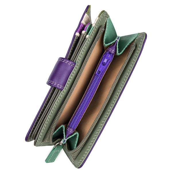 A medium wallet with 9 credit card slots, 2 note/receipt sections, a transparent ID card window and a zip coin pocket.