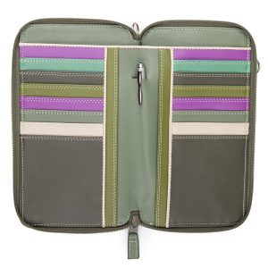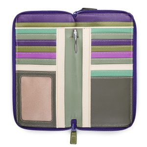 A large coin purse with 3 credit card slots, internal key fob and external zip pocket.