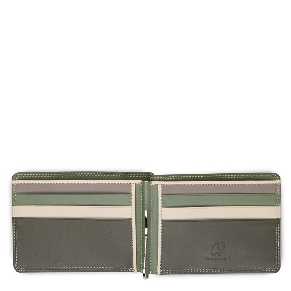 A simple money clip wallet with one click open/close money clip and six credit card slots.