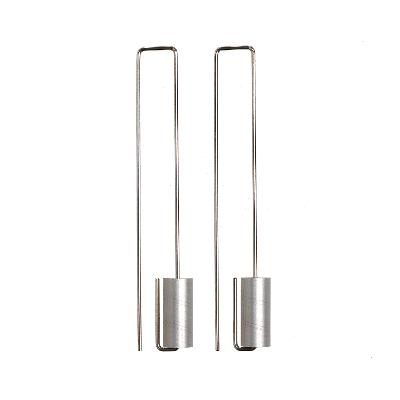 This minimalist, geometric design is comprised of a colourful anodised aluminium tube threaded on an angular polished stainless steel hook.