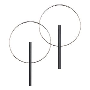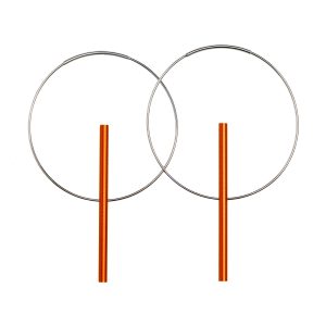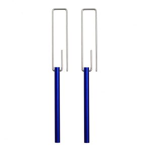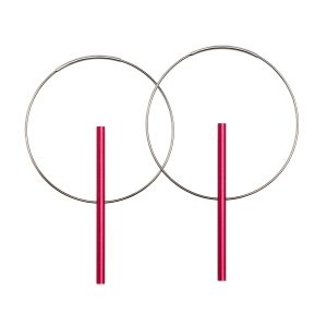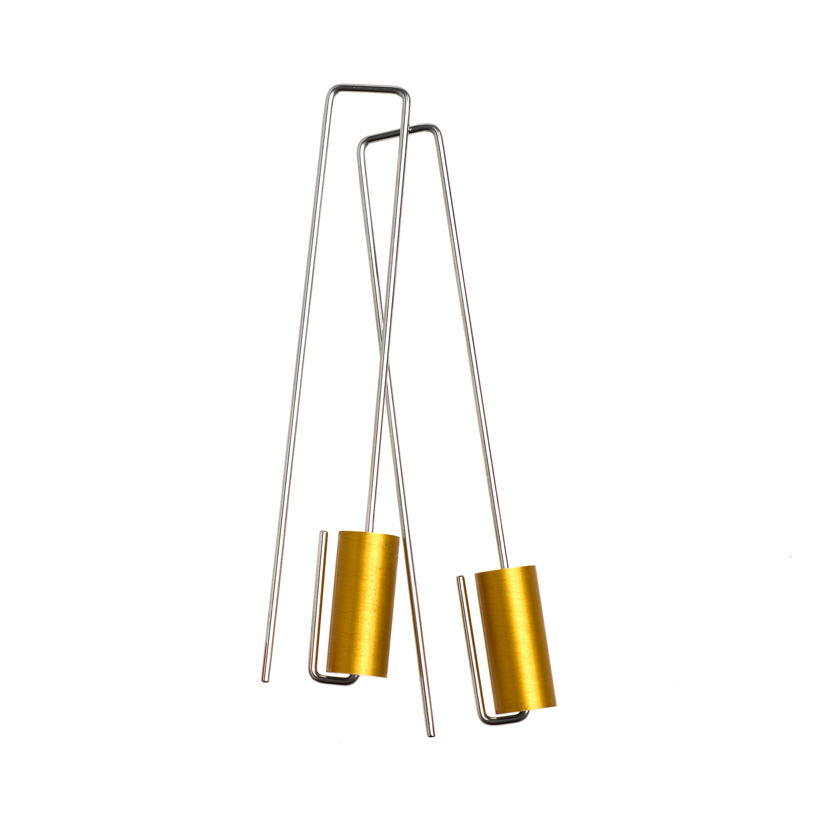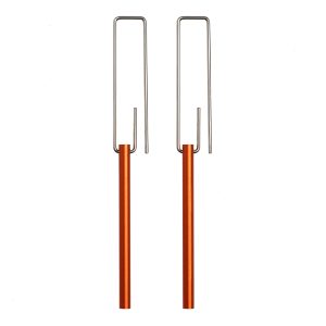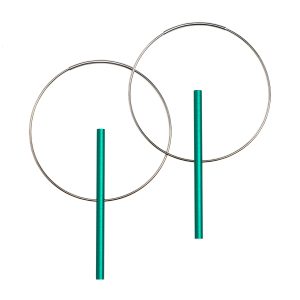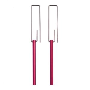This minimalist, geometric design is comprised of a colourful anodised aluminium tube threaded on an angular polished stainless steel hook.