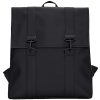 The Rains MSN Bag is based on a traditional schoolbag design and features a slightly square proportion and double carabiner clips. Constructed from Rains’ signature matte water-resistant fabric, this backpack is fully lined with a laptop pocket and a spacious main compartment, whose width can be adjusted at the top via two snap buttons.