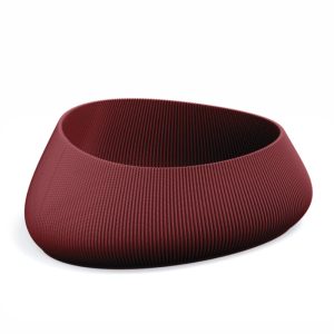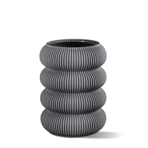 A 3D printed vase, featuring an asymmetrical shape, appearing different from every angle.