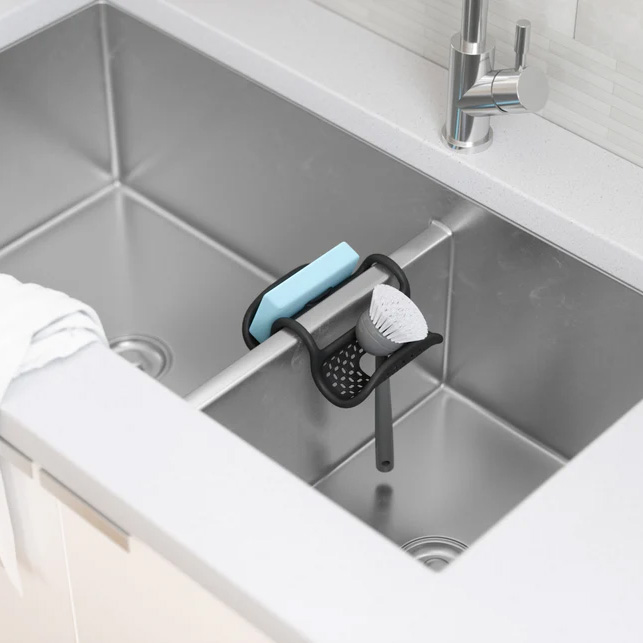Umbra’s Double Sling Sink Caddy is a larger version of their Sink Caddy, with increased functionality. Its plastic-coated wire forms to the shape of your sink, allowing the caddy to be hung around the faucet neck or sink wall.